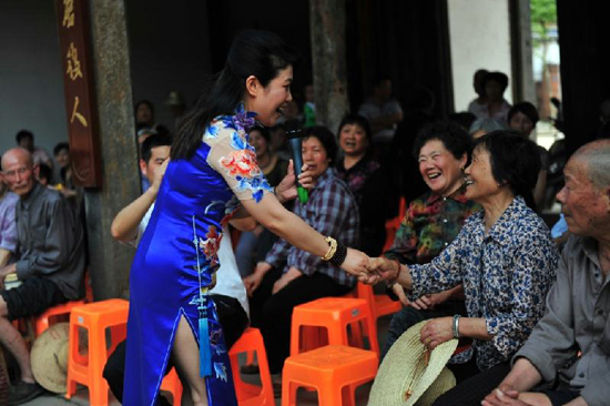 5月14日,浙江省文聯(lián)黨組書記、副主席、書記處常務(wù)書記田宇原和書記處書記張均林率30多位各門類的藝術(shù)家志愿者,走進(jìn)浙江省金華市婺城區(qū)葉店村開展省文聯(lián)“送文藝進(jìn)禮堂”首站志愿服務(wù)活動。