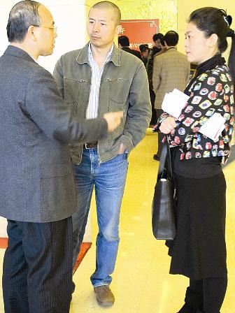 11月23日上午,作代會(huì)第二次全體會(huì)議剛結(jié)束,南京大學(xué)教授許鈞(左)、江蘇省作協(xié)副主席畢飛宇(中)、黑龍江省作協(xié)主席遲子建就在會(huì)場(chǎng)外展開(kāi)交流。 記者 王國(guó)平攝