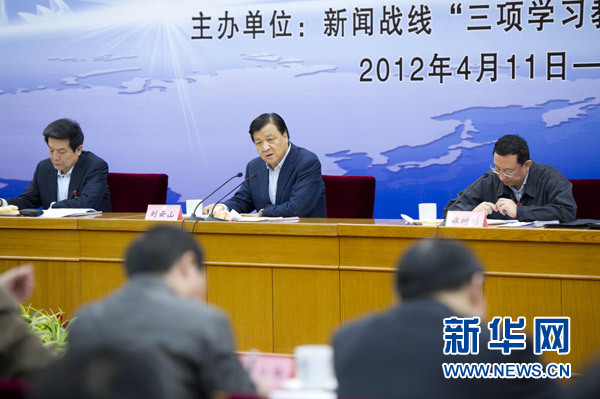 中宣部常務(wù)副部長、新聞戰(zhàn)線“三項(xiàng)學(xué)習(xí)教育”活動領(lǐng)導(dǎo)小組組長雒樹剛主持會議。國家廣電總局、河北省委宣傳部、福建省委宣傳部負(fù)責(zé)同志和人民日報(bào)、新華社、中央電視臺、解放日報(bào)、遼寧日報(bào)的負(fù)責(zé)同志在研討會上發(fā)言。中央宣傳思想工作領(lǐng)導(dǎo)小組成員,新聞戰(zhàn)線“三項(xiàng)學(xué)習(xí)教育”活動領(lǐng)導(dǎo)小組成員,中央新聞單位主要負(fù)責(zé)同志,部分省區(qū)市黨委宣傳部和新聞單位主要負(fù)責(zé)同志,高校新聞院系專家學(xué)者等參加會議。