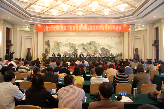 4月16日,由中國文聯主辦,中國文聯國內聯絡部、湖北省文聯聯合承辦的2012全國文聯組聯工作會議暨全國基層文聯負責人學習培訓班在武漢開幕。中國文聯黨組副書記、副主席覃志剛,湖北省副省長張通,湖北省政協副主席涂勇,中國文聯黨組成員、書記處書記夏潮,湖北省政府副秘書長張猛,湖北省委宣傳部副部長陳連生,中國文聯國內聯絡部主任羅成琰,湖北省文聯主席沈虹光,黨組書記、常務副主席劉永澤,中國文聯國內聯絡部副主任李培雋、徐里等領導,以及來自各省、自治區、直轄市文聯,新疆生產建設兵團文聯、副省級城市文聯的領導和組聯干部,各地基層文聯負責人代表200余人出席會議。
