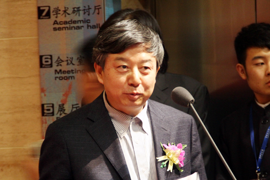 4月26日,“筆墨塵緣——馮遠中國畫作品展”在京開幕。圖為王文章致辭。中國文藝網 孟祥寧 攝