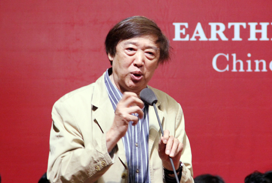 4月26日,“筆墨塵緣——馮遠中國畫作品展”在京開幕。圖為馮驥才致辭。中國文藝網 孟祥寧 攝