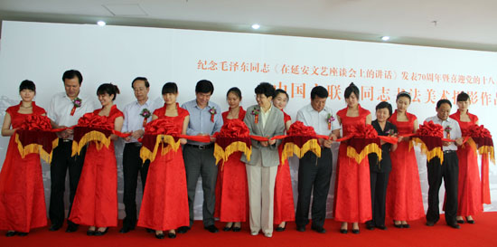 5月22日,紀(jì)念《在延安文藝座談會(huì)上的講話》發(fā)表70周年暨喜迎黨的十八大召開(kāi)中國(guó)文聯(lián)老同志書法、美術(shù)、攝影作品展在中國(guó)文藝家之家開(kāi)幕。中國(guó)文聯(lián)黨組書記、副主席趙實(shí),黨組副書記、副主席覃志剛、李屹,黨組成員、副主席楊承志,黨組成員左中一,黨組成員、書記處書記夏潮、李前光出席活動(dòng)并為開(kāi)幕式剪彩。開(kāi)幕式由中國(guó)文聯(lián)離退休干部局局長(zhǎng)王守明主持。