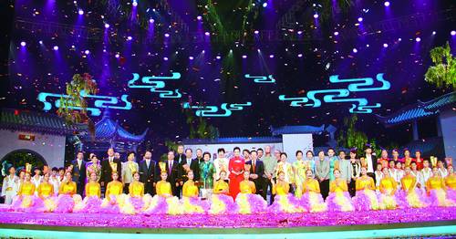 全國政協副主席、中國文聯主席孫家正和中國文聯黨組書記、副主席趙實,江蘇省政協主席張連珍,中國文聯黨組成員、書記處書記李前光,中國文聯副主席、中國曲協主席劉蘭芳,江蘇省委副書記石泰峰,江蘇省委常委、省紀委書記弘強,江蘇省委常委、宣傳部部長王燕文,江蘇省人大常委會副主任林祥國,江蘇省副省長何權,江蘇省政協副主席周珉,江蘇省高級人民法院院長公丕祥,武警江蘇省總隊政委張紅朝,以及董耀鵬、姜昆、陳建文、黃啟鈞、刁惠香、王慧芬、李培雋、鄧光輝、王汝剛、馮鞏、李時成、吳文科、黃宏、崔凱、郭剛、盛小云、程永玲、籍薇、曲華江等中國文聯和江蘇省有關方面及中國曲協領導出席晚會,并與近萬名觀眾一起觀看了精彩演出。