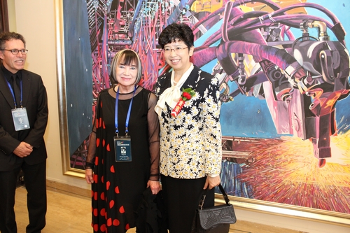 趙實在致辭中說,北京國際美術雙年展是國際美術界的盛會,它秉持鮮明的精神內涵和深厚的人文情懷,廣泛吸納各國具有代表性的美術新作參展,為廣大美術家提供了密切交流對話的藝術空間。本屆雙年展確定的“未來與現實”主題,是世界各國人民共同的課題,也是美術創(chuàng)作的藝術母題,旨在表達藝術家們對人類命運和現實生活的深入思考。通過本次雙年展,我們將在藝術與世界、未來與現實之間架起一道溝通橋梁,不斷推動美術創(chuàng)作繁榮發(fā)展,增進各國藝術家的深厚友誼,促進和諧世界的建設。