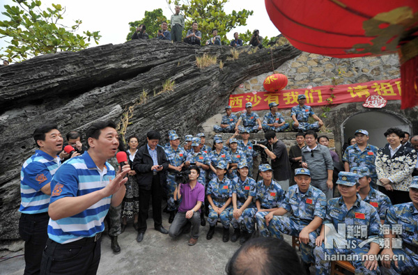 當日,中國文聯藝術家文藝小分隊來到三沙市永興島開展“為人民 送歡樂 下基層”慰問演出,劉蘭芳、姜昆、牛群、鞠萍等一大批著名藝術家來到漁民村和海防前哨,為駐島軍民送去新年祝福。新華社記者 趙穎全 攝