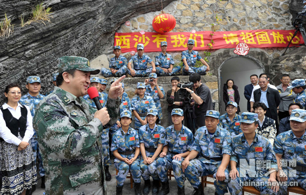 12月31日,中國文聯藝術家文藝小分隊在三沙市永興島為駐島官兵表演節目。