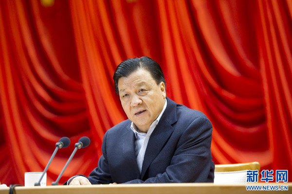 1月6日,中共中央政治局常委劉云山在新進(jìn)中央委員會(huì)的委員、候補(bǔ)委員學(xué)習(xí)貫徹黨的十八大精神研討班上作輔導(dǎo)報(bào)告。 新華社記者 黃敬文 攝