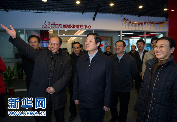 1月17日,中共中央政治局委員、中央書記處書記、中宣部部長劉奇葆到人民日報社調研。新華社記者 王曄 攝