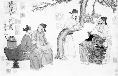 《唐·文苑圖》復(fù)制品(局部)(資料圖片)