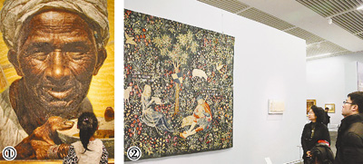 圖①:在中國美術館“群珍薈萃——全國十大美術館藏精品展”上,市民在羅中立的油畫《父親》前駐足。