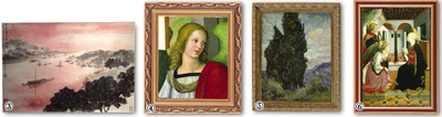 推薦作品:《讀書仕女》林風眠、《花果》潘玉良、《老重慶》吳冠中、《黃山人字瀑》劉海粟、《華盛頓》周鐵海、《三毛從軍記》張樂平