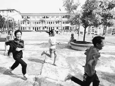 廣西鄉(xiāng)村學校的孩子在跑步。 資料圖片
