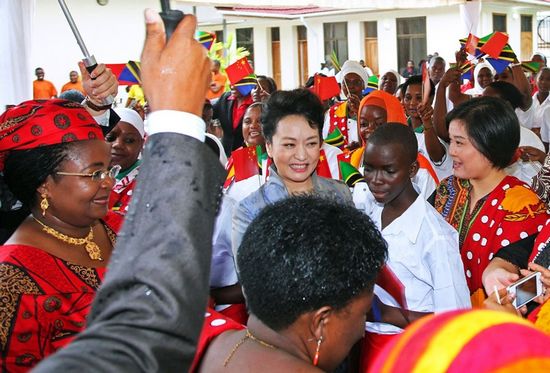 3月22日,坦桑尼亞,彭麗媛在簽名。