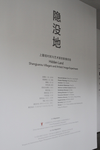 2013年4月7日,“《隱沒地》——上圈組村民與藝術(shù)家的影像實(shí)驗(yàn)”大型攝影展在北京今日美術(shù)館開幕。本次展覽由今日美術(shù)館與中國攝影家協(xié)會(huì)、新華社中國國際文化影像傳播有限公司聯(lián)合主辦。