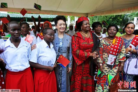 2013年3月25日上午,習近平主席夫人彭麗媛在基奎特總統夫人陪同下參觀坦桑尼亞“婦女與發展基金會”。