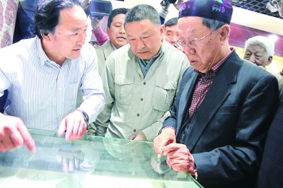 王蒙(右一)在“王蒙書(shū)屋”里參觀。