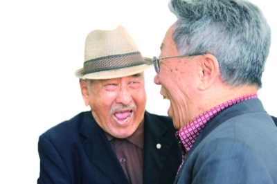 王蒙(右)與老友見(jiàn)面。彭世團(tuán)攝