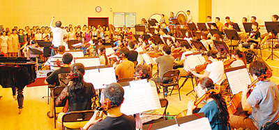 重新裝修排練廳、補充缺少的樂器,樂團終于安了家,人員隊伍也逐漸擴大至50余人。同年8月,在沈河區合唱節上,樂團有了一次展示的機會——為決賽伴奏。這次演出引起了沈陽市文聯的關注,并開始幫助樂團研究、協調發展方向。