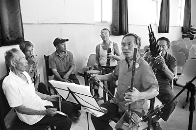 周四溝村鄉(xiāng)村劇團成員在演奏。(資料圖片)