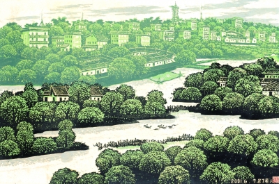 春風吹綠客家村 2001年 61×93cm 油印套色木刻 中國美術館藏