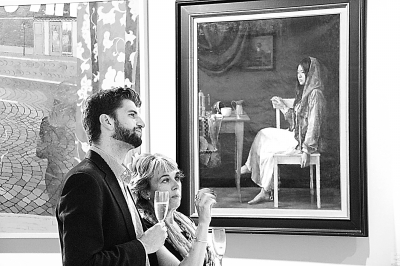 “悅色青黃——快速轉換中的個性”中國當代百名優秀中青年藝術家赴歐美藝術聯展9月2日在倫敦摩爾畫廊開幕。展覽推出中國當代100多位優秀中青年藝術家的300多幅畫作,9月在英國倫敦和美國紐約先后展出。圖為畫展開幕酒會上來賓觀賞展出作品。