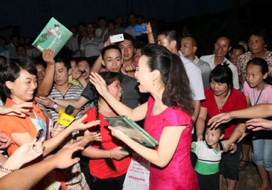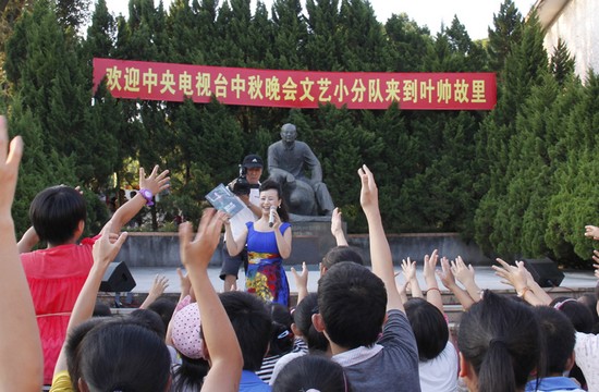 9月16日下午,一下飛機,沒來得及喘口氣,姚林輝在晚會總導(dǎo)演周曉嵐的帶領(lǐng)下和部分演職人員一起馬不停蹄地從揭陽潮汕機場趕往廣東蕉嶺縣廣福鎮(zhèn)大壩村,慰問今年5月份因暴雨襲擊的受災(zāi)群眾。9月17日下午,姚林輝又和白雪、齊峰、安與騎兵、太陽部落、桐瑤、韋嘉、王靜和水木年華組合成員繆杰等人組成央視“秋晚”文藝小分隊前往梅縣雁洋鎮(zhèn)葉劍英紀念園,繼續(xù)開展公益性慰問演出活動,與當?shù)乜图亦l(xiāng)親、革命老區(qū)群眾現(xiàn)場互動,用歌聲傳遞愛心與祝福。