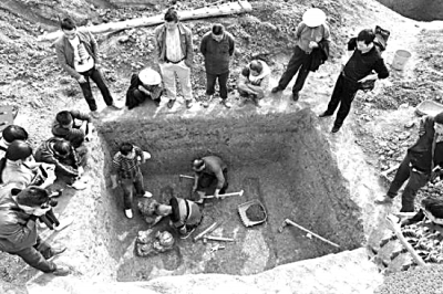 現場考古專家介紹,23座墓都呈東西向,墓葬內,墓壁制作規范,墓內填土都是經過制作的“五花土”。墓群分布的特點是聚族而葬,墓地既有貴族墓,也有平民奴隸墓。貴族墓主要相當于“大夫”“士”這一級別的墓。貴族墓的墓葬規模較大,并有生土二層臺和墓道。