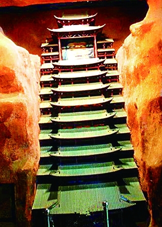樂山大佛大像閣復(fù)原圖模型 資料圖片