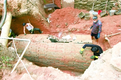 據了解,這座唐代古墓位于福州市倉山區萬春巷福州華能電廠住宅區內。9月22日下午,工人在六號樓前為電梯井挖深坑的時候,鏟出了幾塊帶有銅錢樣式的青磚。施工方當即停工并撥打了文物部門的電話。從當天發現古墓開始,小區專門聘請了保安24小時值班,以防古墓被人為破壞。
