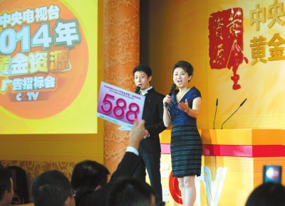 昨天,中央電視臺2014年黃金資源廣告招標會在京舉行,包括娃哈哈、青島啤酒、加多寶、云南白藥、阿里巴巴等數(shù)百家企業(yè)參加競標。經(jīng)過10個小時競標后,央視表示,2014年招標簽約總額穩(wěn)中有增,超過2013年,再創(chuàng)新高。但與往年不同,今年央視并未公布具體數(shù)字。