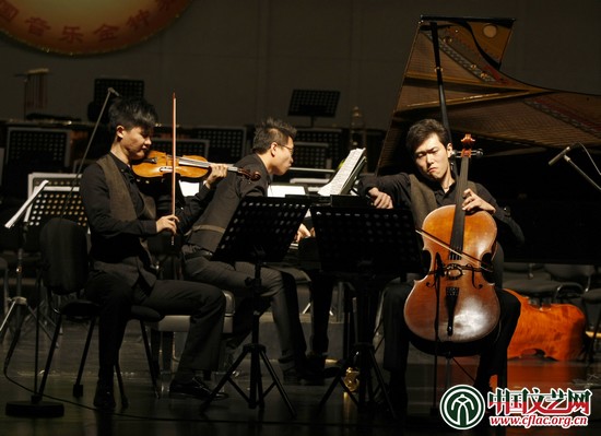獲得器樂(鋼琴與弦樂組合)金獎的上海音樂學院的棱境組合(張潤崯、耿文彬 、朱宛晨)現場表演 張大勇攝