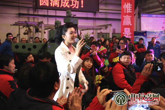 演出既有已過花甲的“陜北民歌王”王向榮唱起地道的《東方紅》,也有年逾古稀的民歌藝術家贠恩鳳再現動人的《山丹丹花開紅艷艷》;既有青年歌唱家王紅梅帶來的原創歌曲《美麗陜西》,也有90后歌手王冠然演唱的熱歌《怒放的生命》……老中青三代陜西歌唱家共聚舞臺傾情放歌,也驗證了舞臺車“有路的地方,我們就能演出”的豪情。“我們的工作每天都是鐵對鐵,叮叮當當,太需要這樣的文藝生活了。”鉚裝車間安全主管郭亮說。
