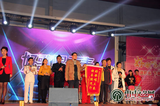 演出結束時,陜汽控股車架廠向陜西省音協贈送錦旗 中國藝術報記者 喬燕冰攝
