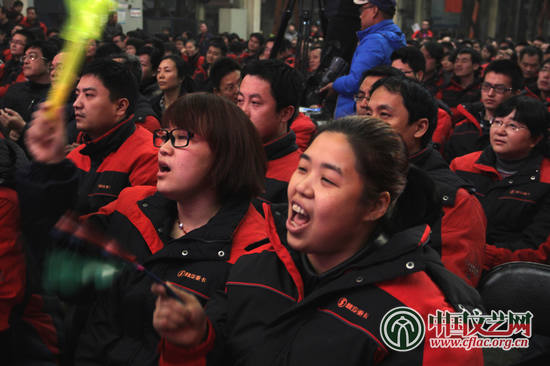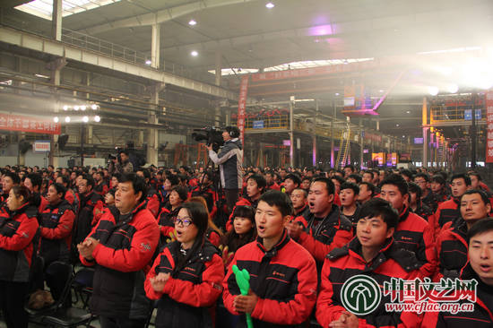 全體歌手、陜汽集團車架廠合唱團民歌聯唱《二十年后再相會》 中國藝術報記者 喬燕冰攝