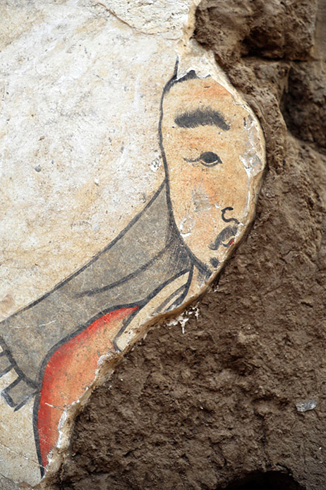 忻州市九原崗壁畫墓中殘存的壁畫局部(12月25日攝)。新華社記者范敏達攝