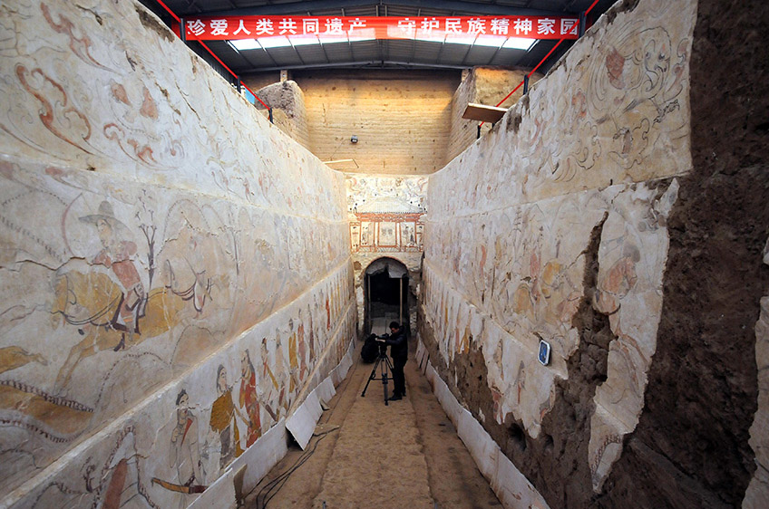 山西發現全國最大北朝墓葬狩獵圖