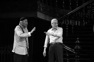 藍天野與朱旭(左)在排練現場[資料圖片]