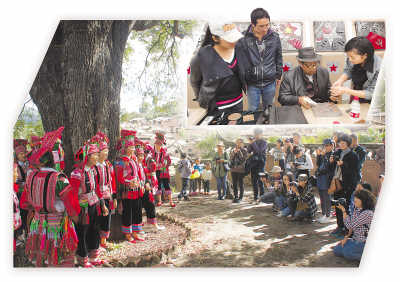 下圖:云南藝術(shù)學(xué)院設(shè)計學(xué)院師生調(diào)研紅河石屏彝族花腰文化。