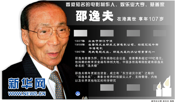 圖表:邵逸夫在港離世 新華社記者 林漢志 編制