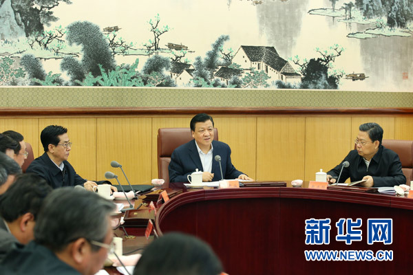 2月9日,中共中央政治局常委、中央黨的群眾路線教育實踐活動領導小組組長劉云山在北京主持召開中央黨的群眾路線教育實踐活動領導小組第九次會議。新華社記者 姚大偉 攝