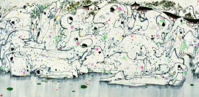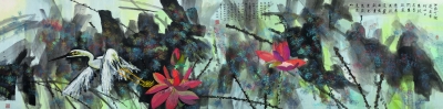 黃永玉 《荷塘鸕鶿》 紙本設色 91×365厘米 北京匡時2010年春拍成交價格560萬元 (北京匡時供圖)