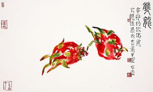 海派巨擘吳昌碩承古開今,既是傳統繪畫的終結者,又是現代繪畫的開創者。傳統方面,他繼承趙之謙以金石入畫的方法,并上溯徐渭、金農,把以書入畫的文人畫傳統推到了極致;現代方面,他追求畫面的視覺沖擊力,用色單純、對比強烈,且引入西洋紅畫花。他延續傳統并吸收外來藝術特點、積極呼應時代的藝術精神對后世產生了極深的影響。齊白石的繪畫聞名大江南北,標志著20世紀初寫意花鳥畫在人文精神及文化觀念上的轉變。他的成就在于徹底拉近了中國畫這一傳統藝術形式與普通民眾的關系,他將文人傳統、民間傳統、文人修養與農民氣質結合,他畫面中所傳達出來的單純質樸與鮮活的生命狀態為身處大變革時代的人們帶去了慰藉。