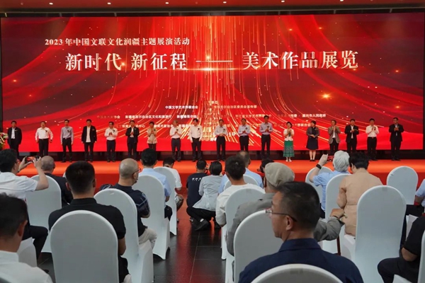 2023年中國文聯文化潤疆主題展演活動“新時代 新征程——美術作品展覽”開幕式現場