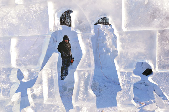 近日,名為《奧林波斯山上的雕塑》冰雕雪雕秀在莫斯科庫茲明基公園舉行。