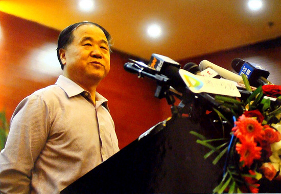 “科學(xué)發(fā)展 成就輝煌”圖片展·“文化建設(shè)”部分·2012年10月1日,莫言獲得2012年諾貝爾文學(xué)獎(jiǎng)。圖為莫言在接受記者采訪。