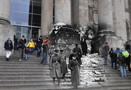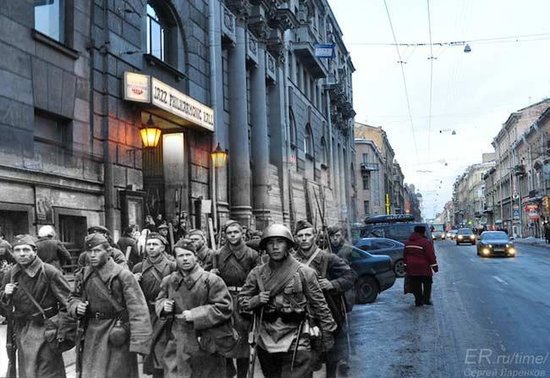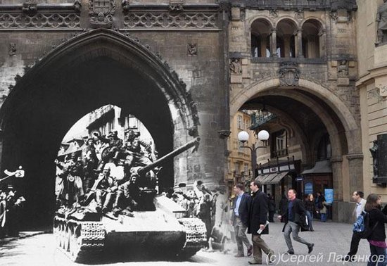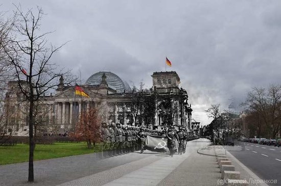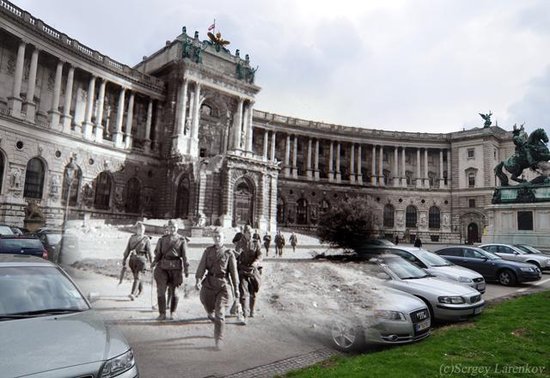 據(jù)《太陽報(bào)》和《莫斯科時(shí)報(bào)》報(bào)道,俄羅斯攝影師謝爾蓋伊·拉仁科夫用合成照片制造出驚人的時(shí)空穿越效果,仿佛二戰(zhàn)“幽靈”復(fù)活,行走在現(xiàn)代街道上。拉仁科夫介紹,他從檔案館和網(wǎng)上搜尋到二戰(zhàn)時(shí)期的老照片,并通過ps技術(shù),將這些黑白照片和同一地點(diǎn)拍攝的現(xiàn)代日常照片整合到一起。這個(gè)過程很簡單,效果卻非常驚人:納粹德軍的鐵蹄踏上人來人往的現(xiàn)代馬路;行色匆匆的上班族與扛槍的士兵擦身而過;戰(zhàn)爭死難者的尸體凄涼地倒在繁華的現(xiàn)代都市街頭……這些照片仿佛開啟了一扇二戰(zhàn)時(shí)期的“時(shí)空之窗”,給人一種異樣的穿越之感。拉仁科夫稱,他制作這些合成照片是為了讓人們重新審視那段已經(jīng)被許多人逐漸遺忘的歷史,牢記戰(zhàn)爭給人類帶來的痛苦。