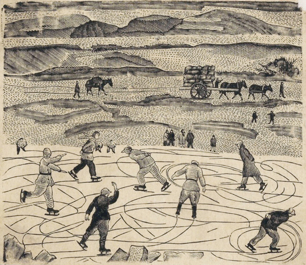延河溜冰(版畫(huà)) 劉峴 1941年 中國(guó)美術(shù)館藏