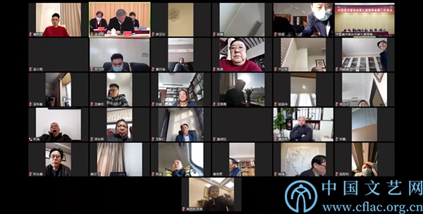 12月19日,中國(guó)美術(shù)家協(xié)會(huì)第九屆理事會(huì)第二次會(huì)議在京召開(kāi)。圖為線上視頻同步直播。
