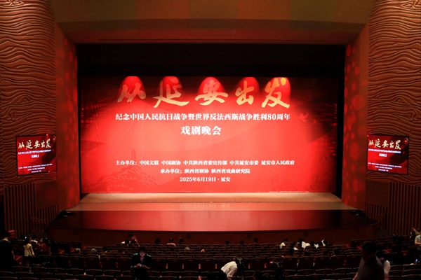 為深入學習貫徹習近平文化思想,致敬光輝歷史,傳承紅色基因,由中國文聯(lián)、中國劇協(xié)、中共陜西省委宣傳部、中共延安市委、延安市人民政府共同主辦,陜西省劇協(xié)、陜西省戲曲研究院、延安市文聯(lián)共同承辦的“從延安出發(fā)——紀念中國人民抗日戰(zhàn)爭暨世界反法西斯戰(zhàn)爭勝利80周年戲劇晚會”于6月19日晚在陜西省延安市延安大劇院舉辦。